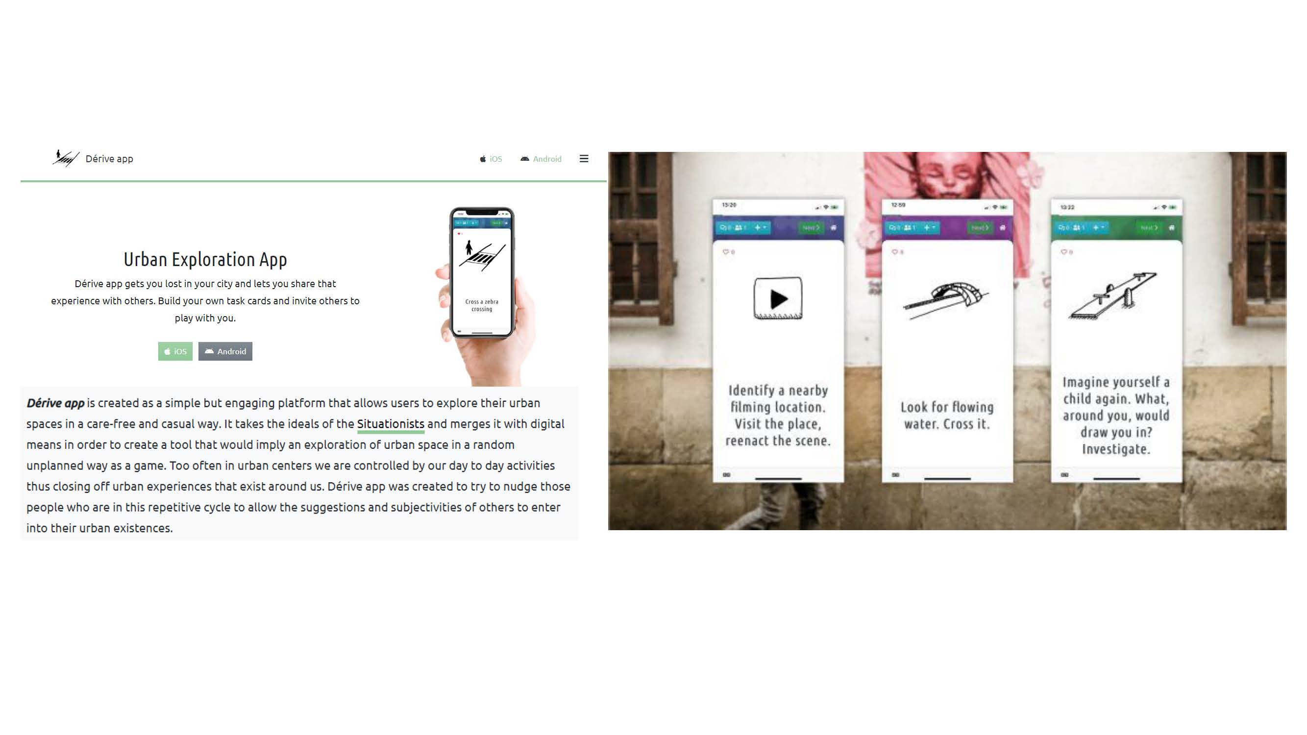 Take Siri, for instance, a friendly daily companion facilitating tasks like messaging, navigation, and information retrieval. Then there's Derive, an urban exploration app disrupting routines by guiding users through random and unplanned urban experiences. Its screen prompts offer unexpected encounters, making each exploration uniquely unpredictable.