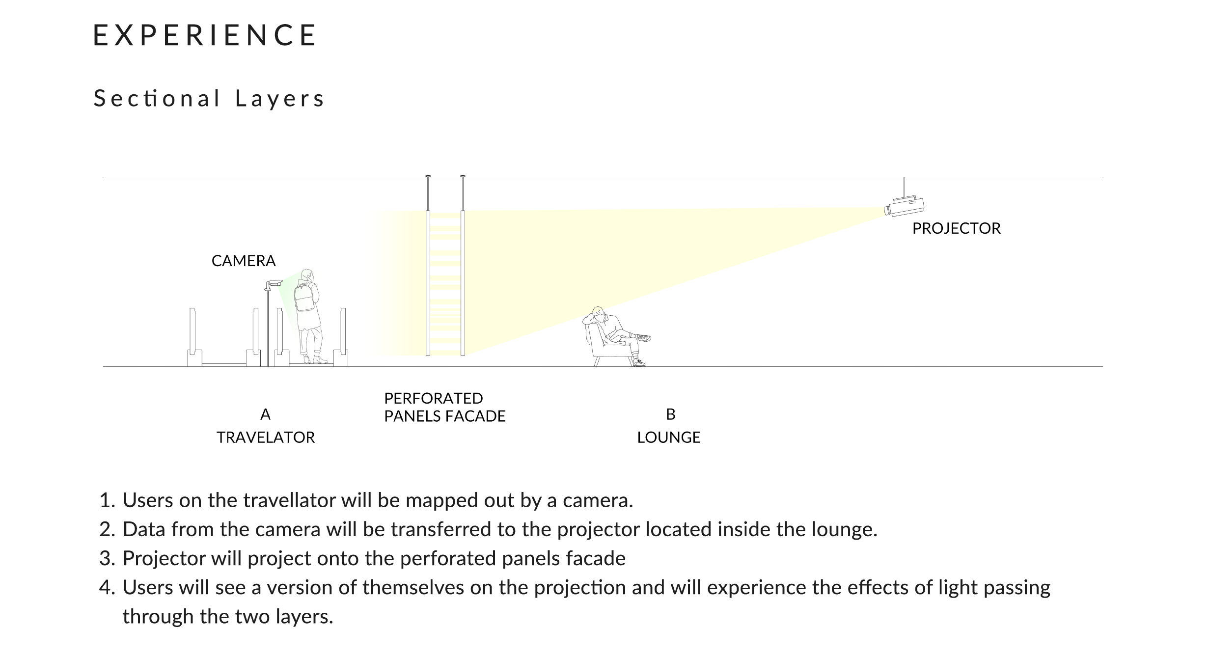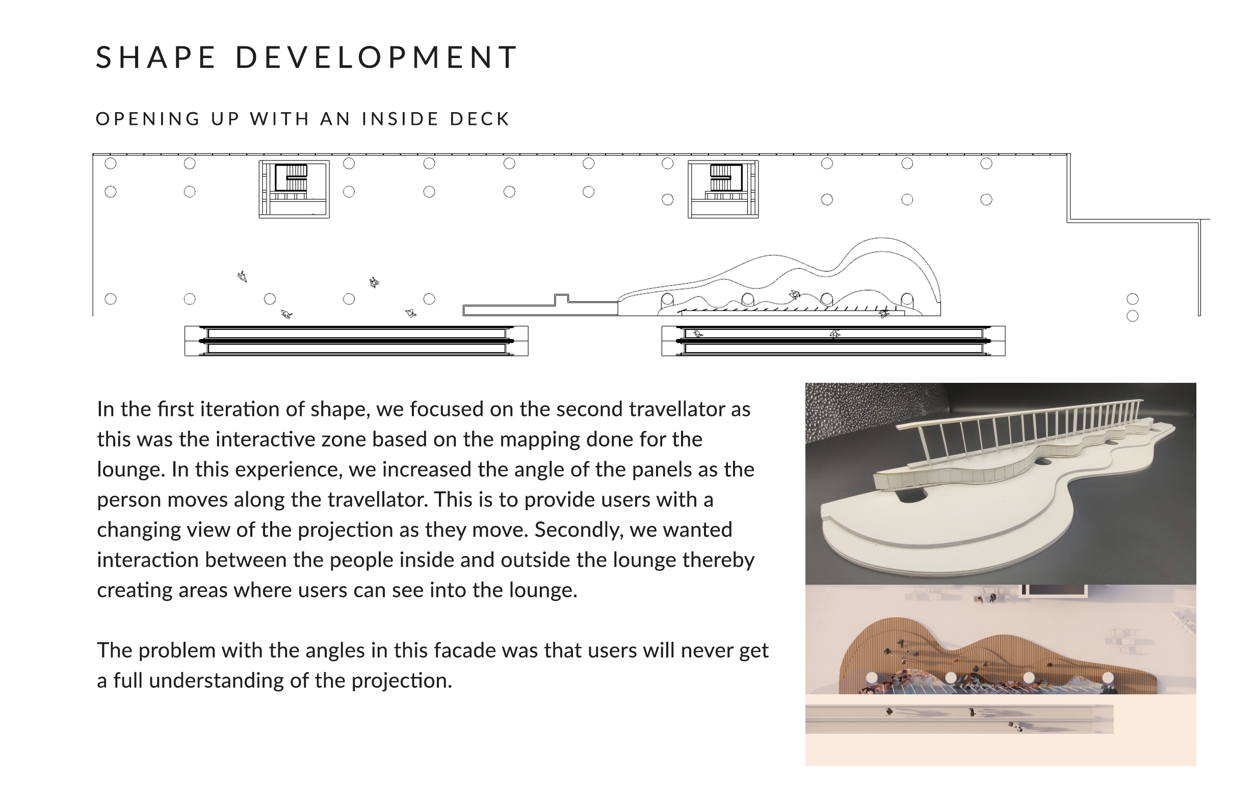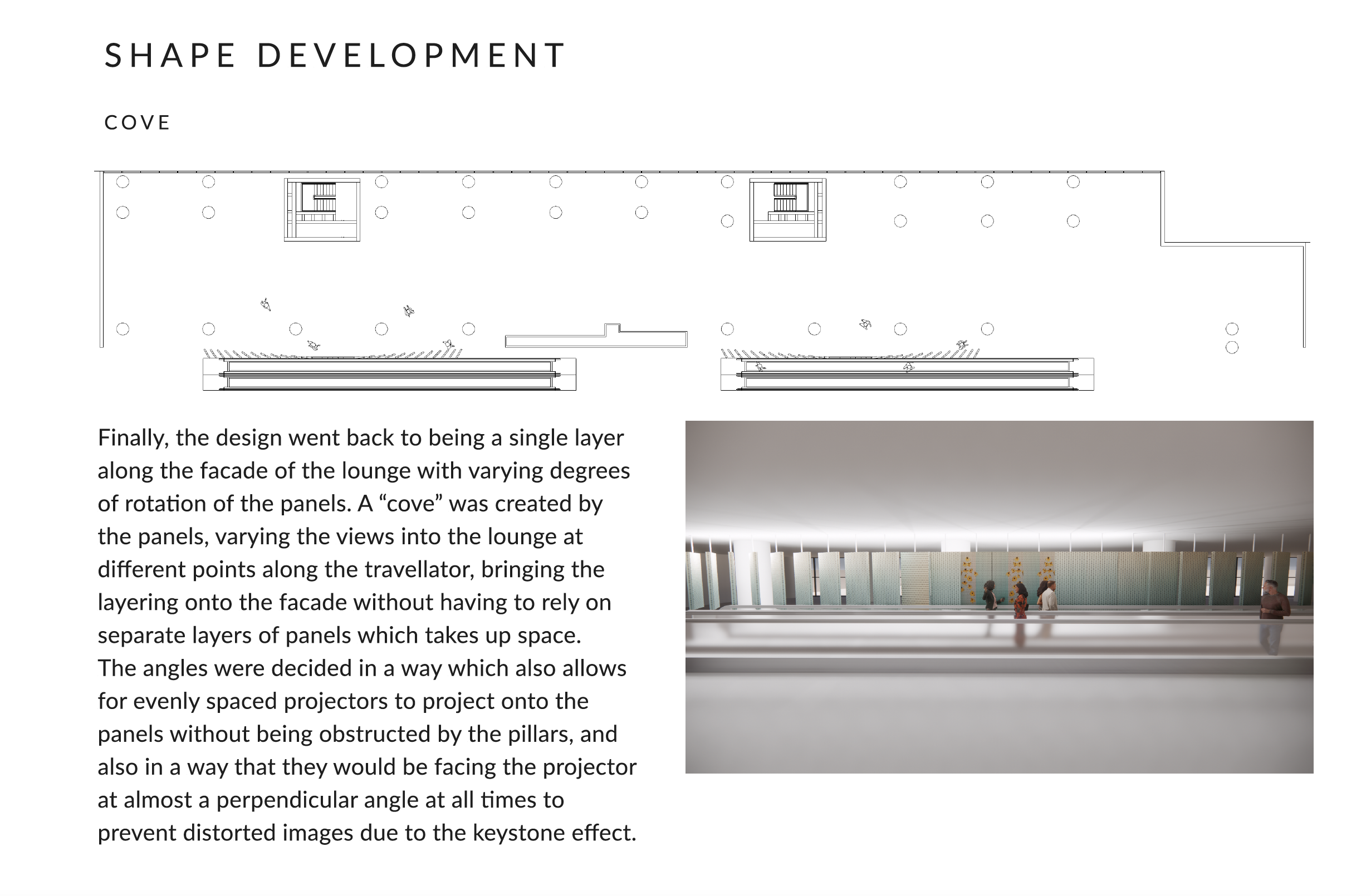 Passersby on the outside of the facade along the escalator, drawn by the animated spectacle, would be compelled to investigate the source of the enchantment within the lounge. This ingenious design would not only welcome arriving passengers but also actively engaged and beckoned them to join the vibrant atmosphere within.