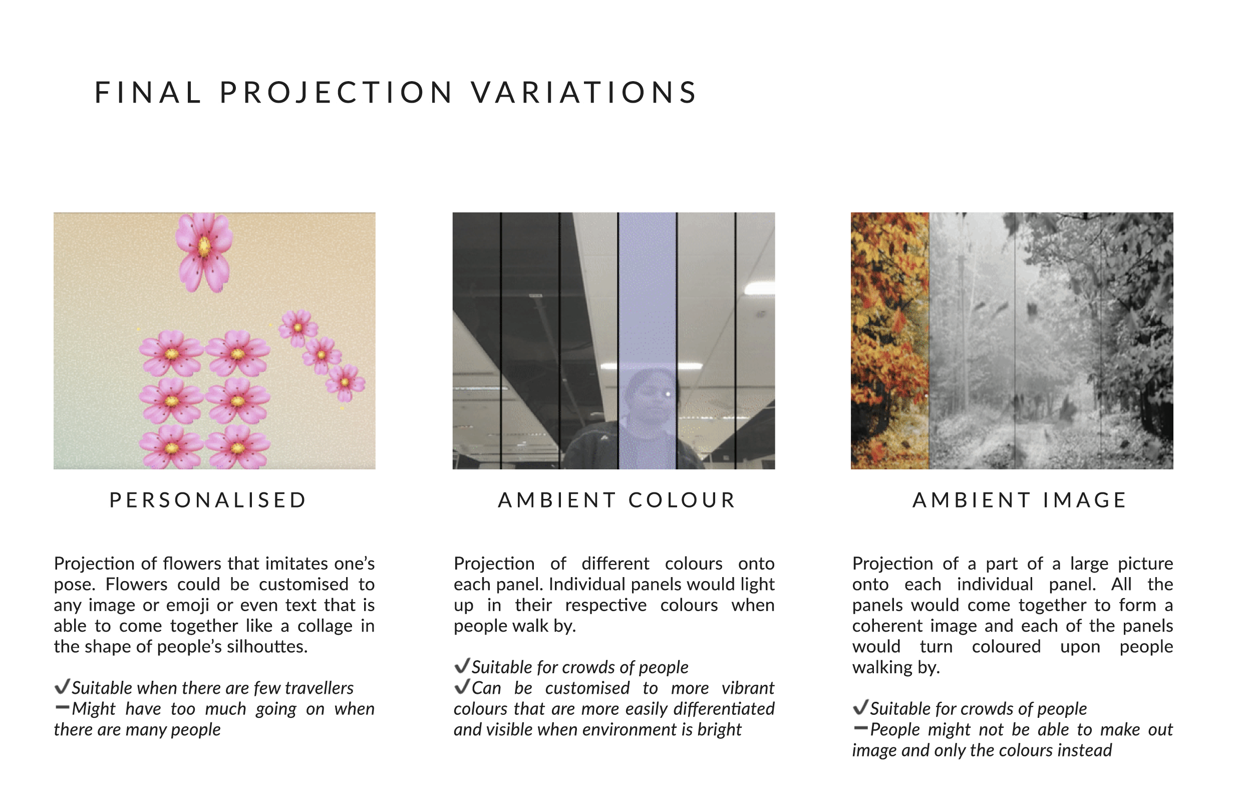 What set our project apart was the integration of cutting-edge technology. Using pose estimation techniques to project different colours and images on the perforated panels screen, an interactive display unfolded. As passengers traversed the vicinity, their silhouettes triggered a dynamic interplay of emojis and colours, each projection tailored to the unique movements and shapes of those passing by. This not only added a playful and visually arresting element but also transformed the facade into a living, responsive artwork.