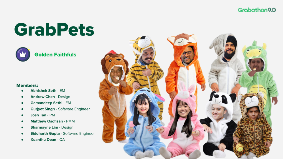 As part of GrabPets, our team won 3rd place among 422 participants across 70 teams, in the “Golden Faithfuls (aka Loyalty): Retention” category in just 2 days of hacking! We are featured over here!