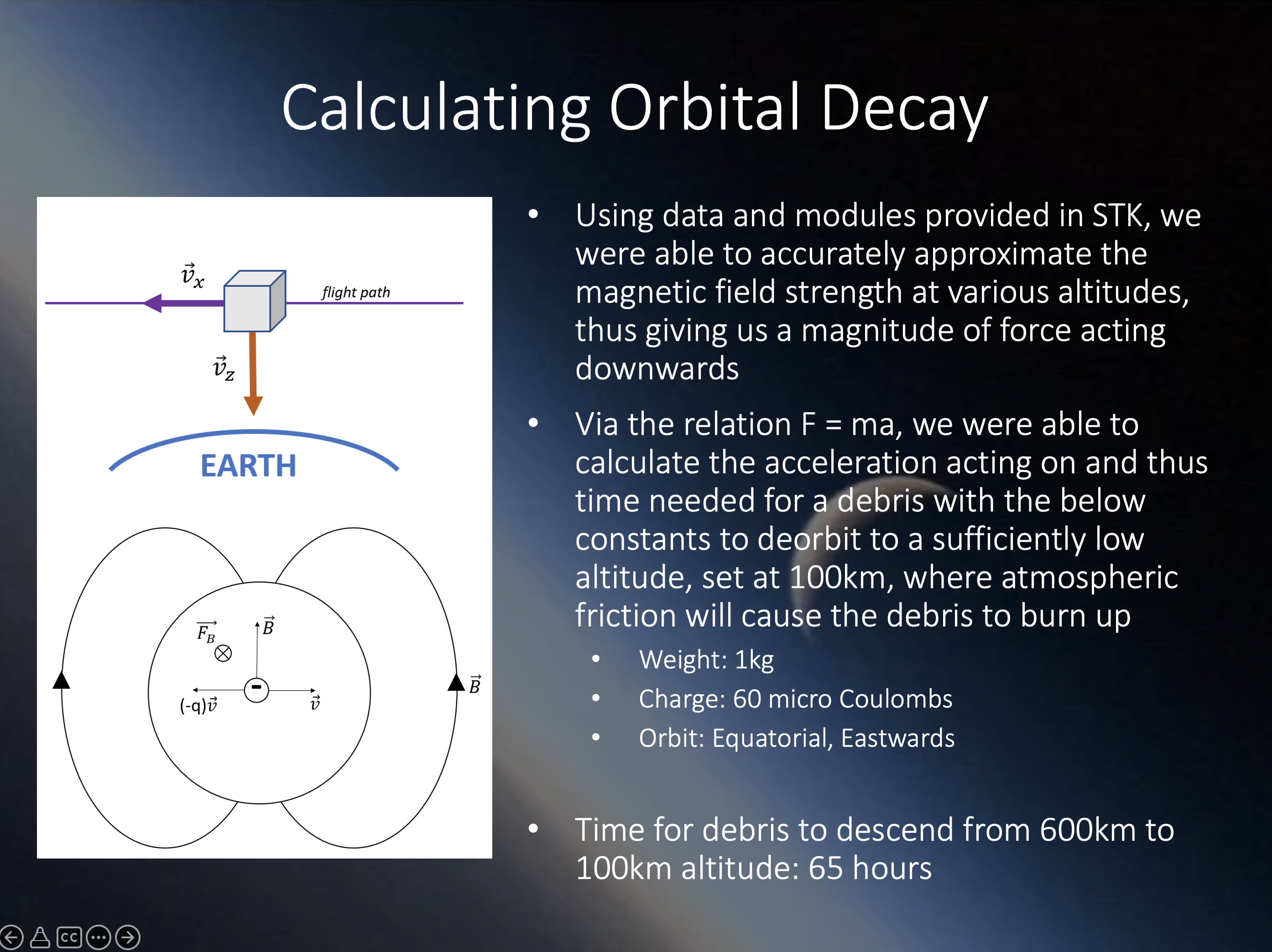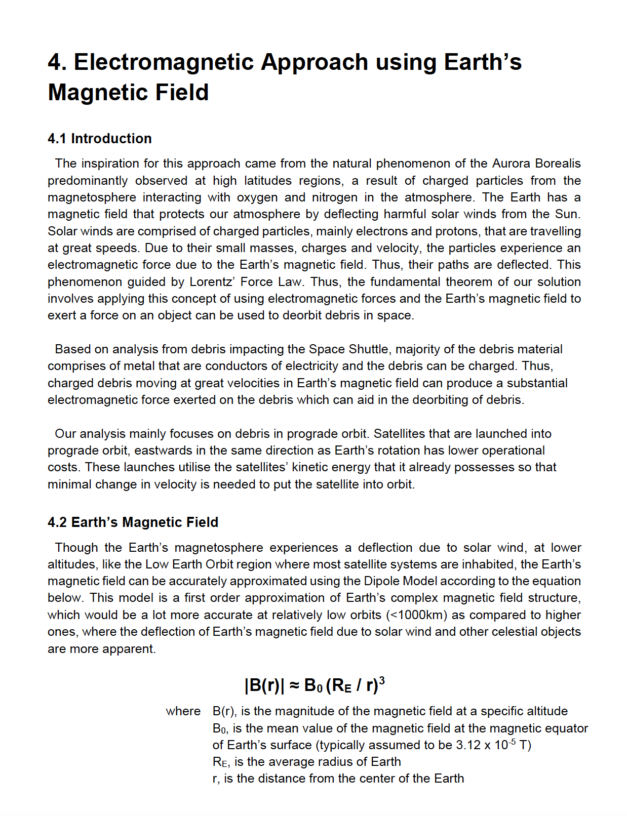 Team member: in charge of debris material research, electromagnetic approach and electron gun system