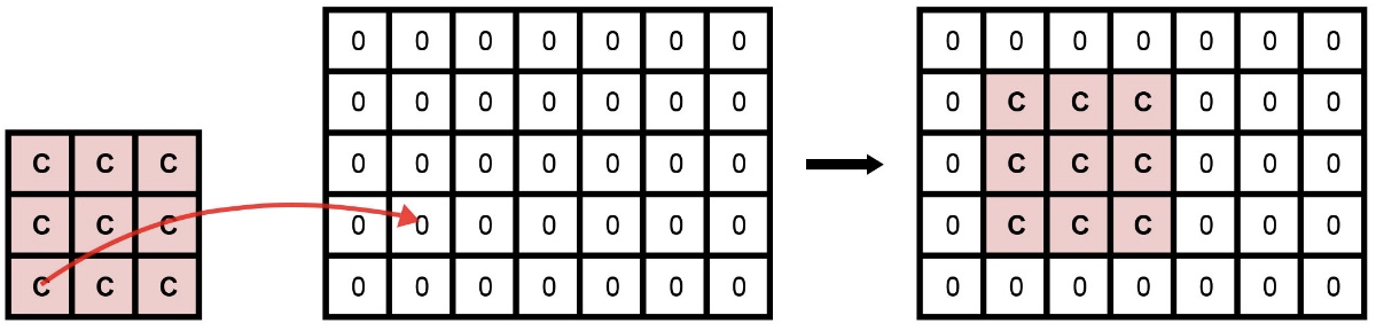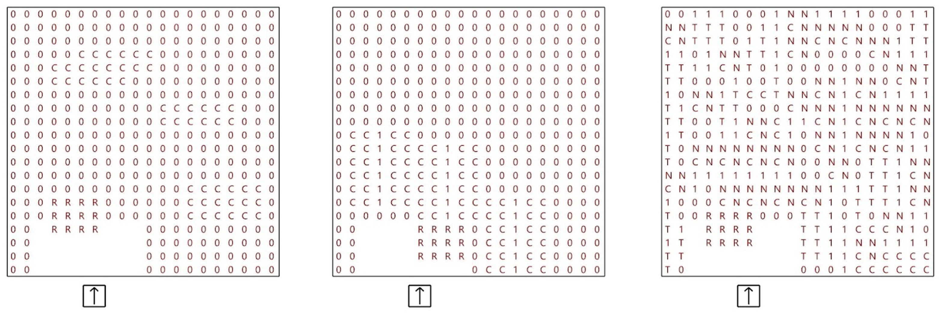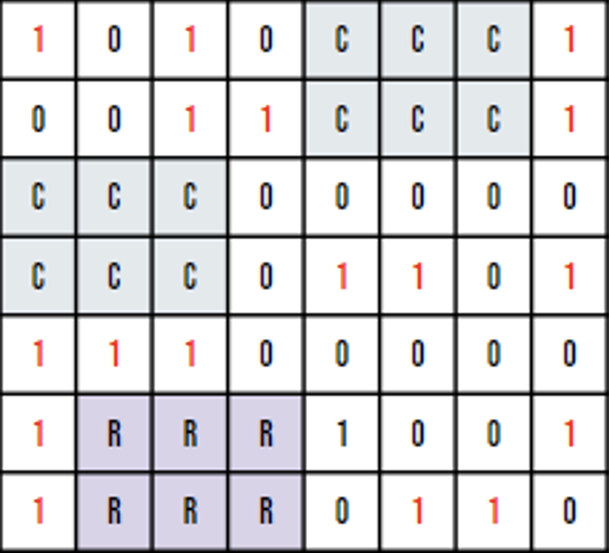 When the cluster function is called, the function will check if the position of the target coordinate is valid before finishing the task. If the call is successful, the function will return the dictionary “cl_prop” which stores information of the cluster. At the same time, a new target coordinate will be returned to be used to call for the next cluster within the column. To decide which cluster function to call when generating the matrix, an ancillary function is used which takes in an integer as the argument and calls for the corresponding cluster function.