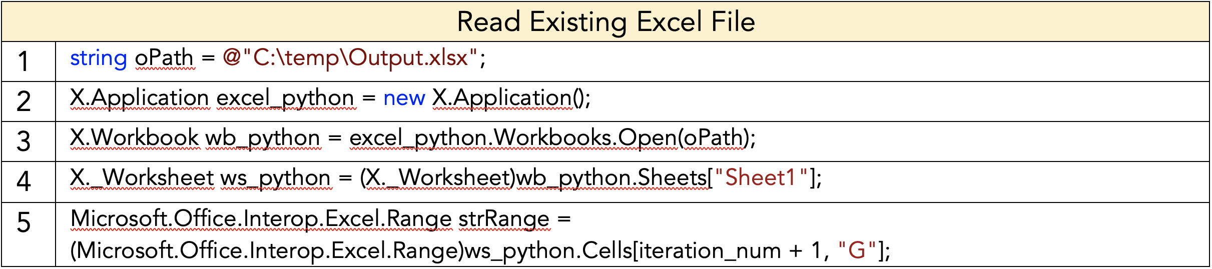 Figure 10: Code for reading existing Excel file