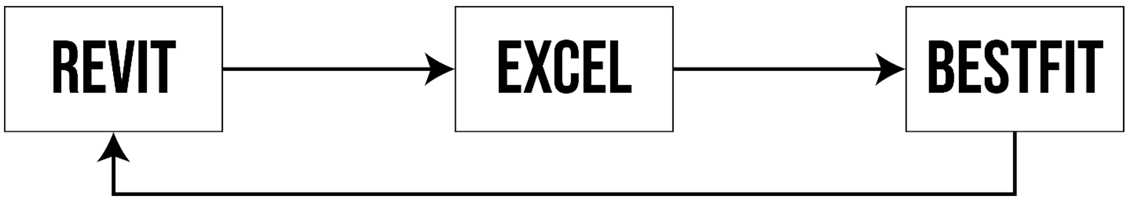 BestFit then reads the information from the excel files and uses it for the layout generation and optimisation algorithm. The output is then visualized in Revit in the form of generated Revit elements.