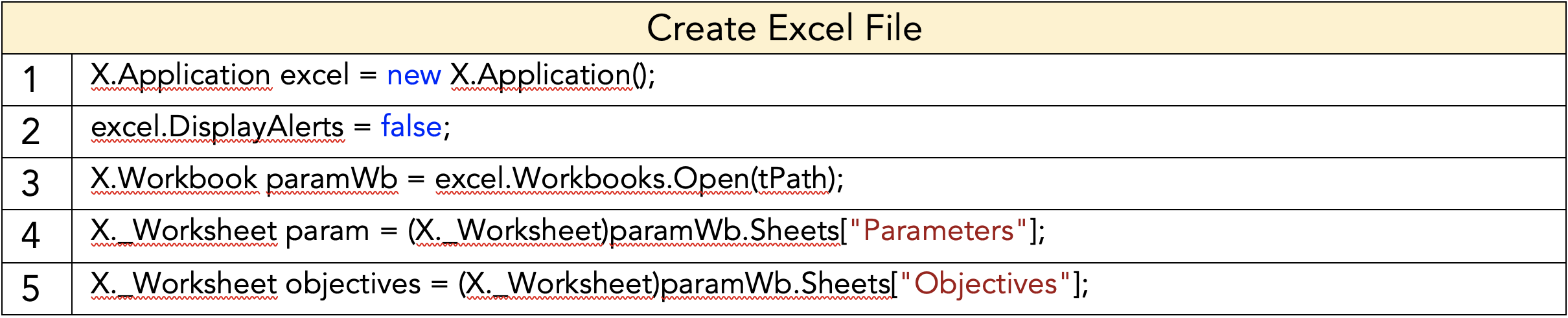 Figure 10 shows a generic chunk of C# code to open an Excel file through C# and read the necessary lines of data from it. This was the main method used for transfer of data between the C# libraries.