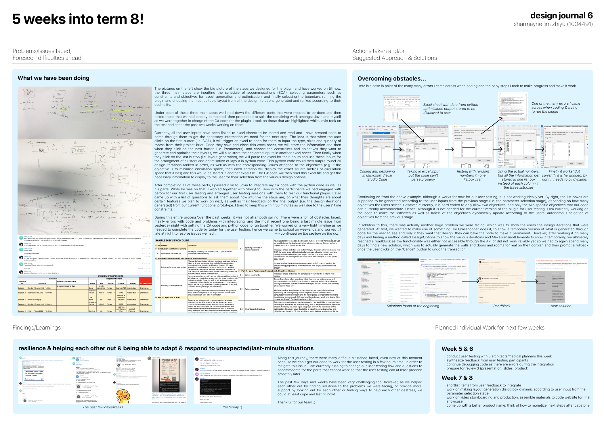 This section describes the progress of the user interface and user experience component from its initial to later designs informed by the feedback from user testing. It will contain an analysis of the feedback received with key decisions and proposed steps to achieve them, along with an elaboration of the limitations faced during this process.