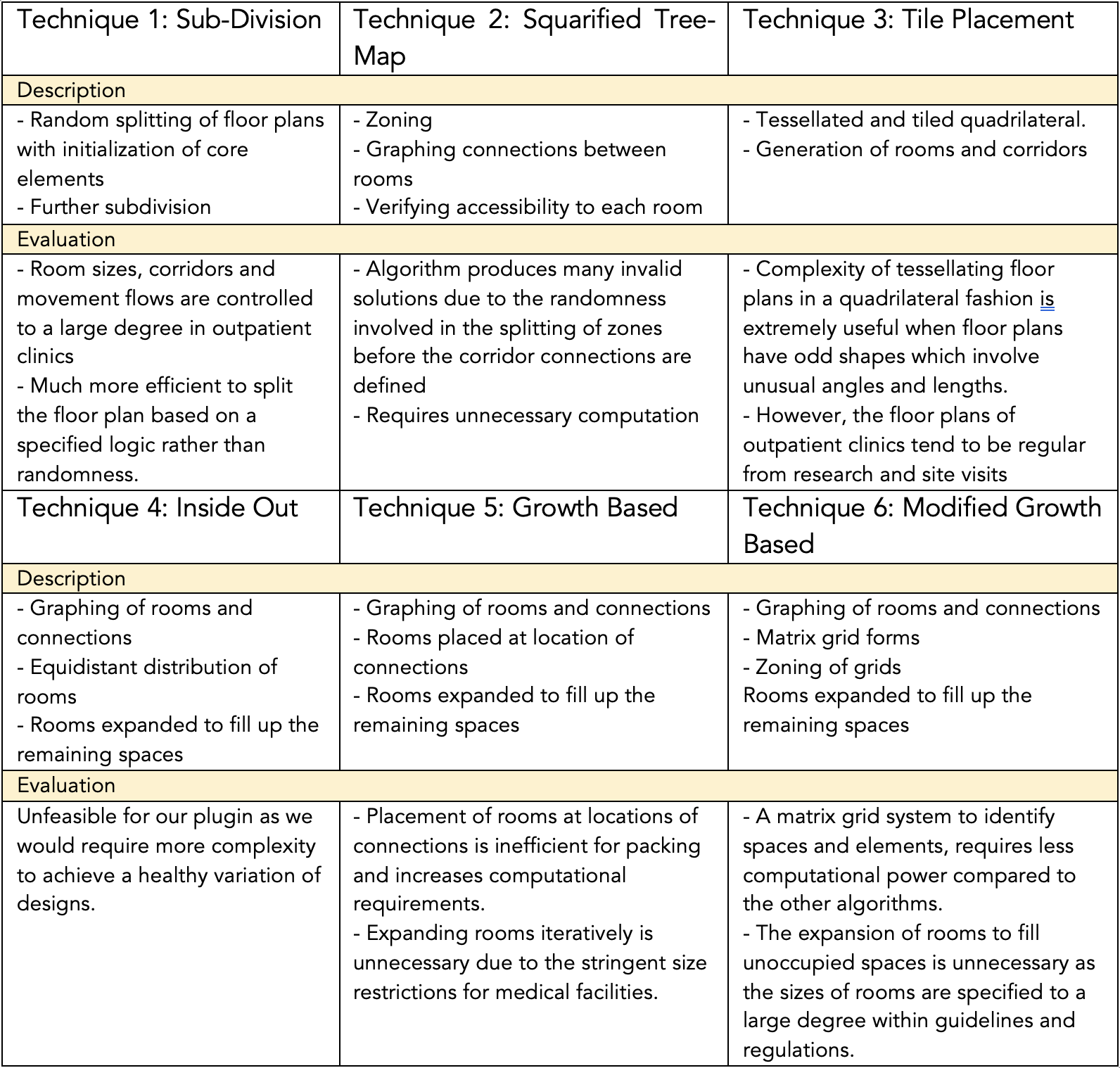In summary, the architects thought that the final version of our plugin produced layouts that were believable and useful, and that our plugin was a great starting point for them to generate many quick layouts. However, there is definitely still room for improvement before the product becomes market-ready and the layouts generated can be further refined with some amendments to the generation algorithm as expounded in Table 8. Nevertheless, the architects that we interviewed are positive that this plugin has great potential and that it would be very helpful for them as it would allow them to reap immense time and cost savings.