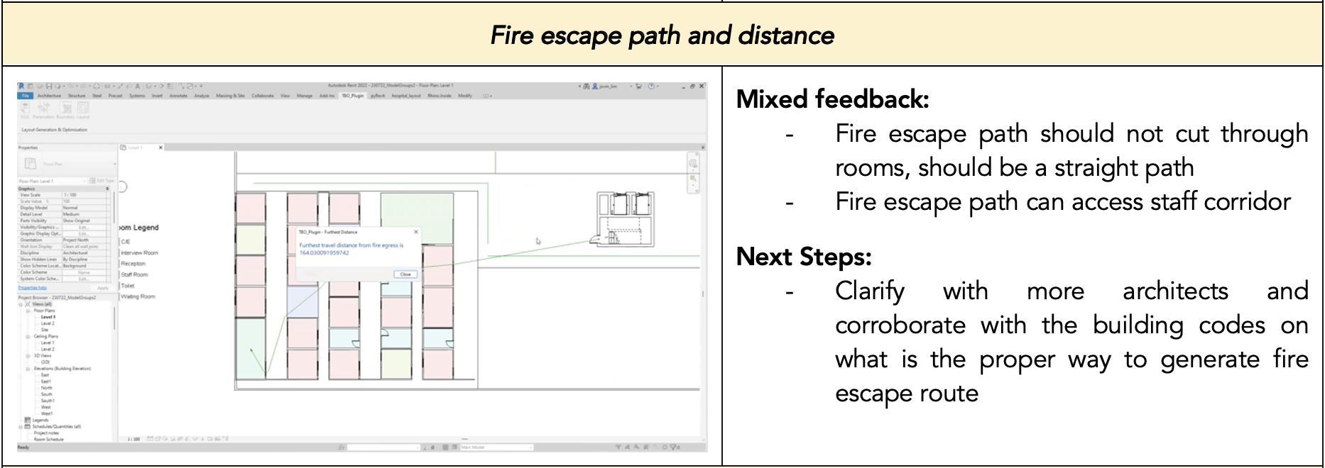 To better understand our user base and the functionality that is required of the plugin, the team approached several architectural firms with teams that specialize in hospital and healthcare design such as DP Architects, HKS Architects and Swan & Maclaren Architects. Conducting user testing with these companies and obtaining their feedback on the plugin allowed the team to gain a greater understanding of our target market, the value they see in the plugin and what they are ultimately looking for.