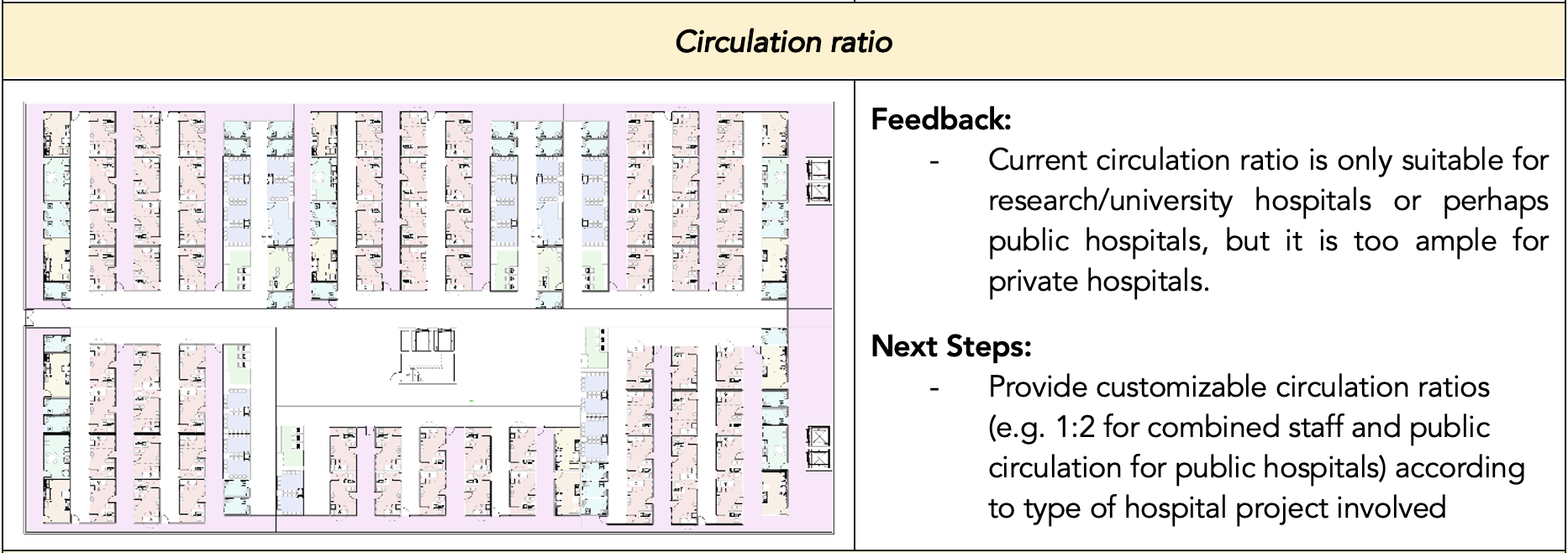 As healthcare architecture is a very specialized field that we were unfamiliar with, we had to engage in copious amounts of research to develop a better understanding of it. We first conducted interviews with healthcare architects, medical planners and people who worked in healthcare facilities management to understand more about the workflow of hospital design and validate certain assumptions we had made about problems faced in the planning and design of healthcare facilities. At the same time, we were on the lookout for pressing pain points that healthcare architects had to help us think of and formulate solutions to mitigate their problems.